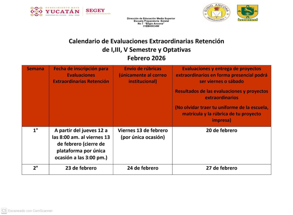 Horario de inscripción: 8:00am a 3:00pm